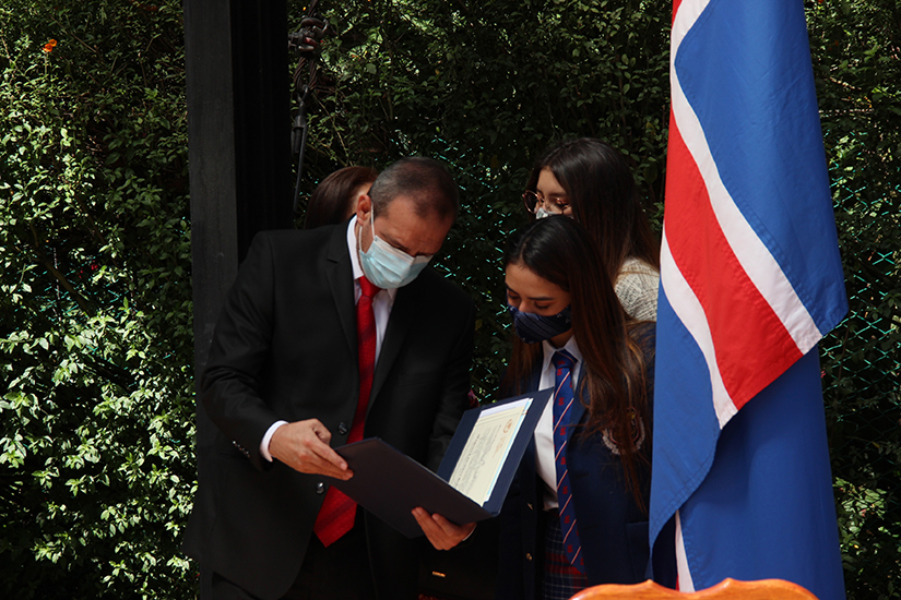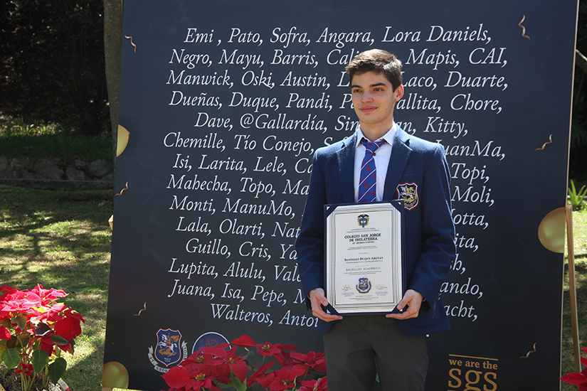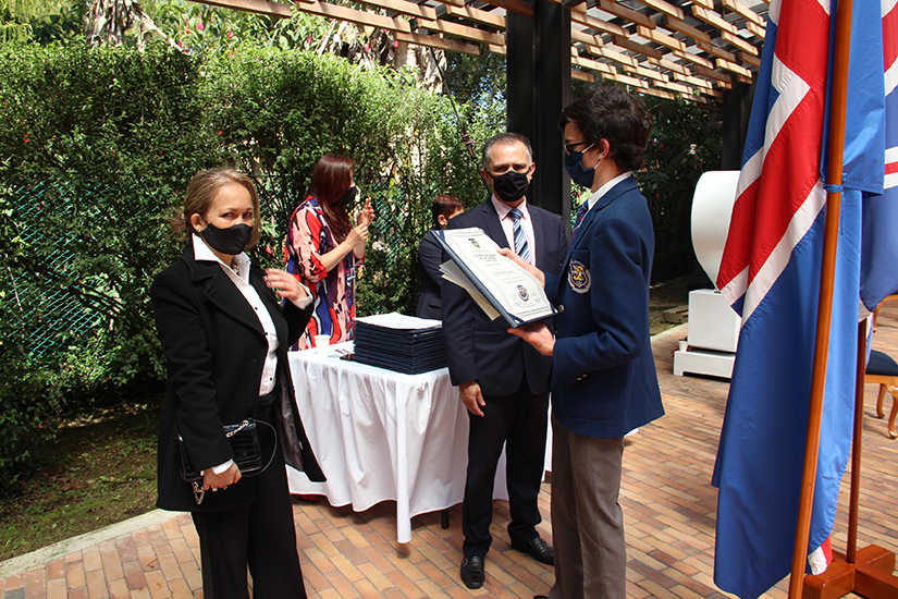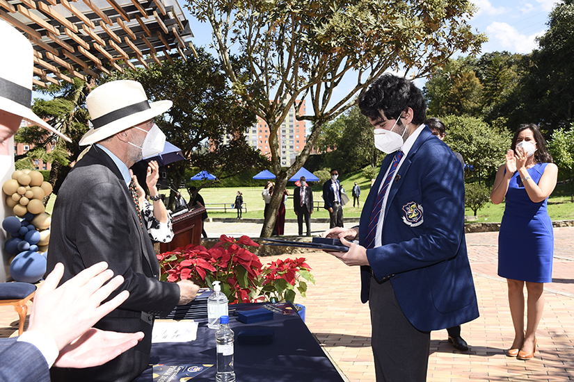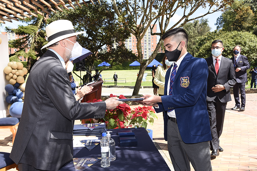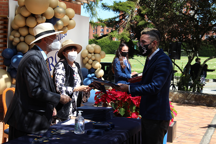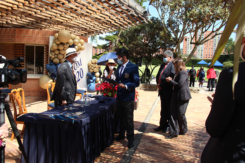 Con gran emoción el 12 de diciembre de 2020 llevamos a cabo la ceremonia de graduación para nuestros estudiantes de la promoción 2019-2020. Evento que se dividió en dos partes, la primera inició virtual a las 8:00 a.m., directivas, representantes de los estudiantes, de los padres de familia y de instituciones aliadas al Colegio se dirigieron a los graduandos y a sus familias con mensajes de despedida, resiliencia y los mejores deseos para esta nueva etapa en sus vidas. Por primera vez, toda la Comunidad pudo disfrutar de la ceremonia de graduación, gracias a la virtualidad.