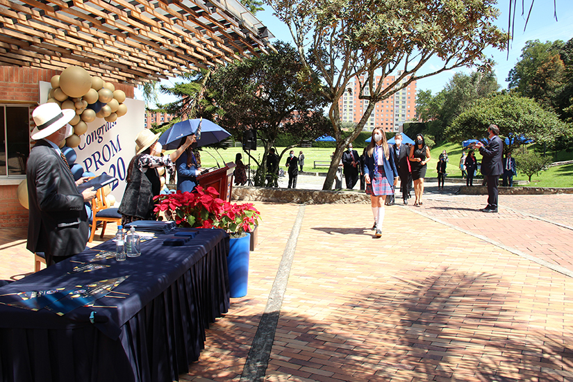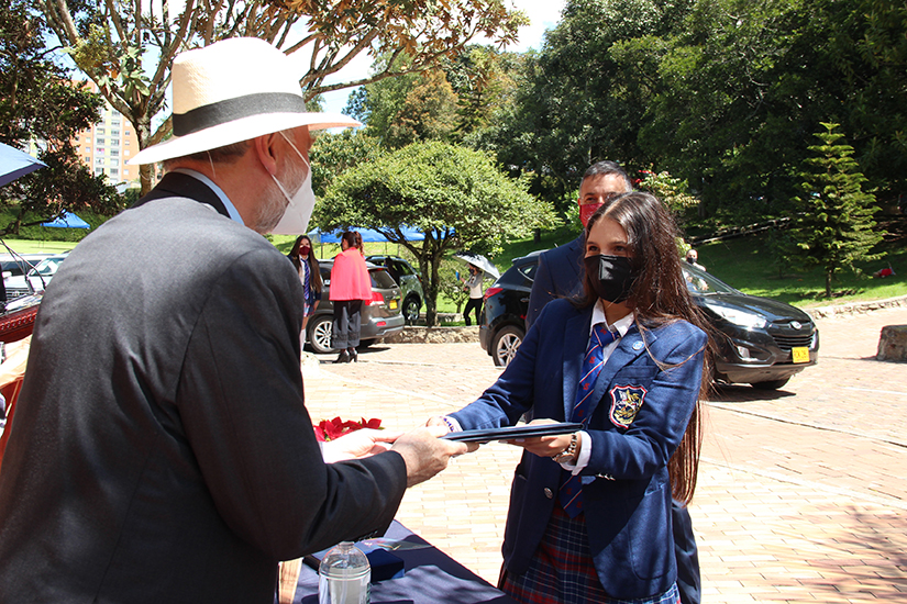 Siguiendo paso a paso el protocolo de bioseguridad y con el corazón lleno de emoción transcurrió la mañana. Se habilitaron las tres porterías para el ingreso de los automóviles y se prepararon diferentes estaciones en las que los estudiantes se tomaron algunas fotografías y disfrutaron de las sorpresas que el Colegio había preparado para ellos. En la última estación estuvieron las directivas para entregarles el diploma y cerrar así con un abrazo desde la distancia el ciclo de 14 años de su vida escolar.