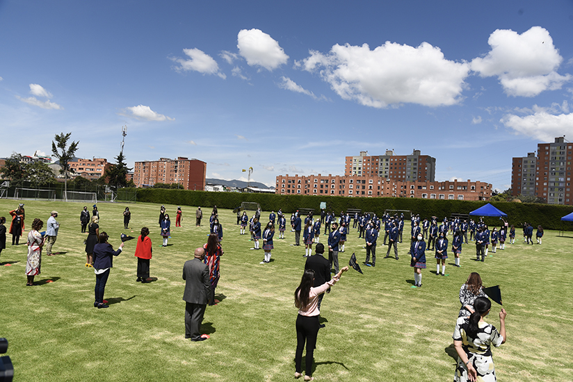 Para la segunda parte del evento, se organizó una gran logística para que los estudiantes y sus padres pudieran ir al Colegio y recibieran el diploma. Directivas, profesores, administrativos, bienestar, auxiliares, servicio de alimentación, personal de mantenimiento y servicios generales, entre otros les dieron una calurosa bienvenida y garantizaron la seguridad y el cuidado de todos.